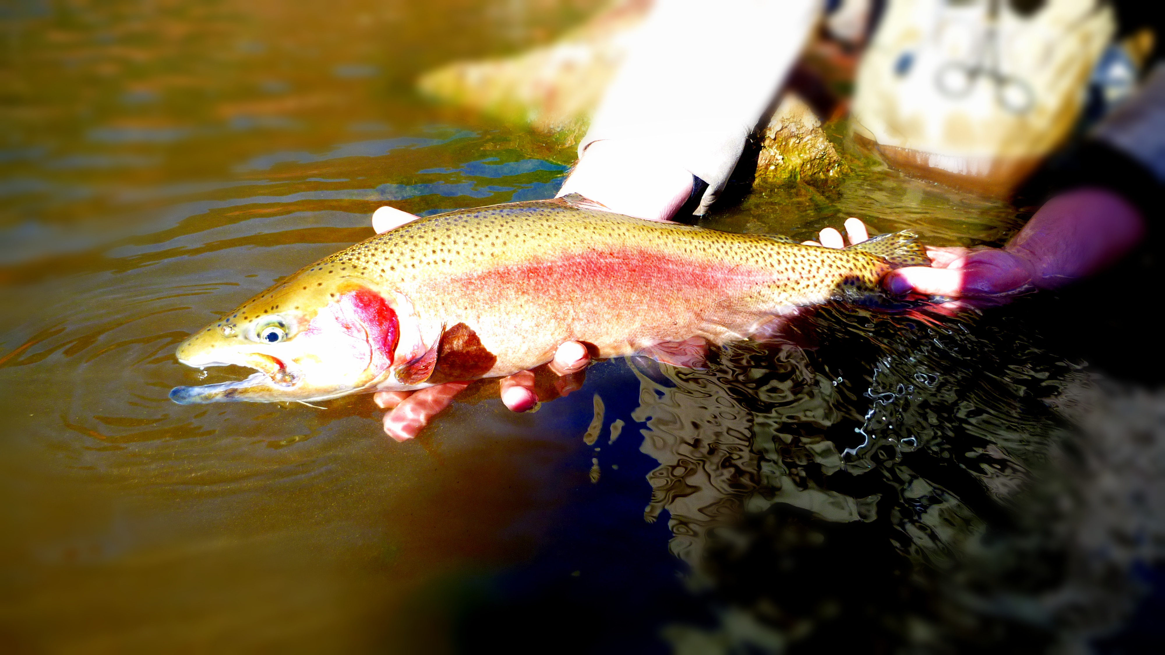 Then, suddenly, as if right on cue, out of the corner of my eye I noticed movement under the water. Another school of early morning Rainbows were pushing through the area. Just as soon as I had thought I had completely blown it, I was reinvigorated with hope once again. I slowly rose to my feet.