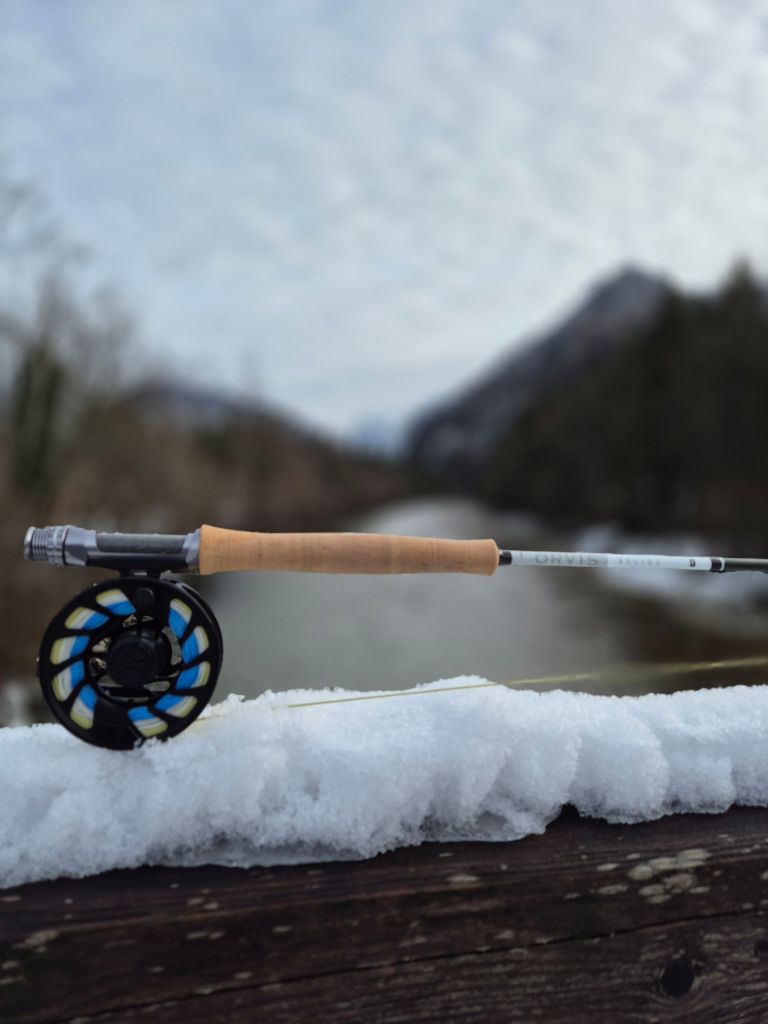 Standing now fully suited, kitted, and fly rods in hand, we scouted the section of river below us and began planning our advance. The white puffs of steam from our breath rose slightly before being taken away by the cold breeze. We laughed as we both remarked on crazy we must be, to be out here fly fishing, in such conditions. But no one else was attempting such idiotic feats this morning- at least here on this river, so for now we had the place to ourselves.