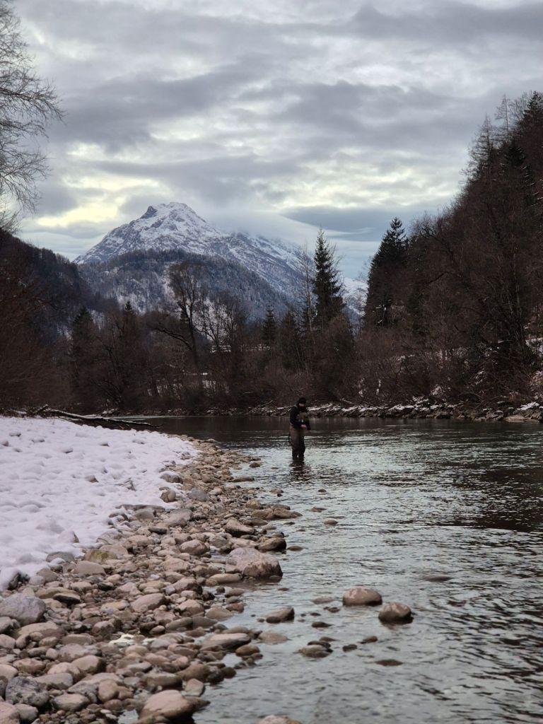 Suddenly the ringtone from my android pierced through the chorus of the blasting HXVRMXN ‘Headlights Flashes’, which was cranked on high as I drifted through the snowy lanes. It was my die-hard, fish-or-die bro from Germany, calling now as I was about 1 hour away from the destination. I picked up and shouted “Whatβs up bro?”, “Where you at?”. He exclaimed he was already waiting in the parking lot. Navigation details exchanged, shit talking completed, and motivation levels now replenished, I hung up and turned back up the accompanying beats and cruised into the snowy alpine morning. With a fishing companion as dedicated as me, as hard-core as they come – joining me on this idiotic trip: at least the arctic suffering wouldn’t be enjoyed alone.